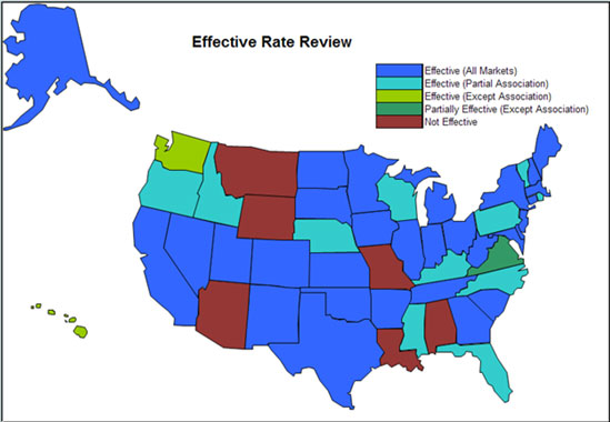 Note on the Legend: States and HHS review rates for individual, small group, individual association,