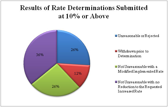 To date, based on those filings at or above the 10 percent threshold, approximately 64 percent of determinations have been found to be unreasonable or have been modified or withdrawn (see Figure 1).