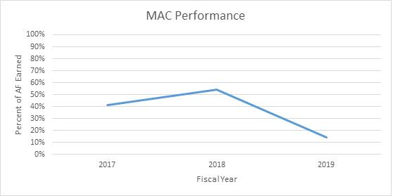 This table and graph depict the average percentage of award fee earned pertaining specifically to the System Security metric. This metric measures the findings attributed to the MAC being evaluated as a result of the Section 912 evaluation.