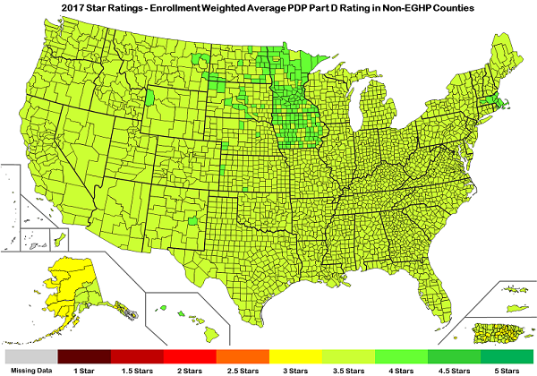 - In 2017, weighted by enrollment, over 90% of MA-PD enrollees are in contracts with ratings of 3.5 or more stars.