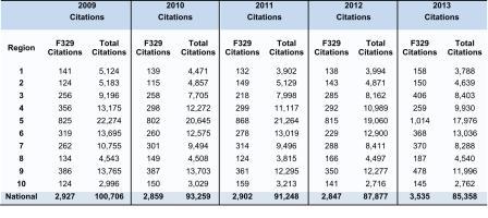 Table 1: Number of F329 and Total Citations on Annual Surveys, 2009-2013