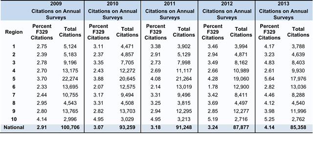 Table 2: F329 Citations as a Percentage of All Citations on Annual Surveys, 2009-2013