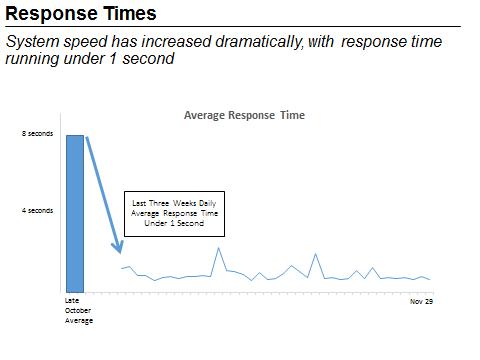 Improving the user experience for HealthCare.gov required deeper real-time analysis to the system, additional technical expertise, and a strong management structure to drive the prioritization and metric-driven execution of fixes. The Center for Medicare and Medicaid Services (CMS) appointed QSSI as the General Contractor and Systems Integrator. QSSI, with their deep project management expertise, coordinates all activity with CMS and other contractors. With one central command structure and “War Room” meetings of all key parties held twice a day for real-time, data-based decision making, the team has been able to implement high-performance management practices and drive through a priority set of fixes.