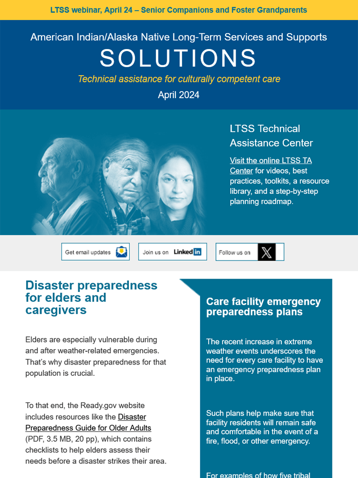 - Disaster preparedness for elders and caregivers