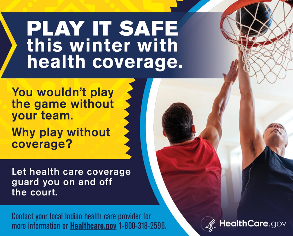Playing well takes practice and teamwork. So does staying healthy. Let health care coverage guard you on and off the court. Contact your local Indian health care provider, visit healthcare.gov or call 1-800-318-2596. A message from the Centers for Medicare and Medicaid Services.