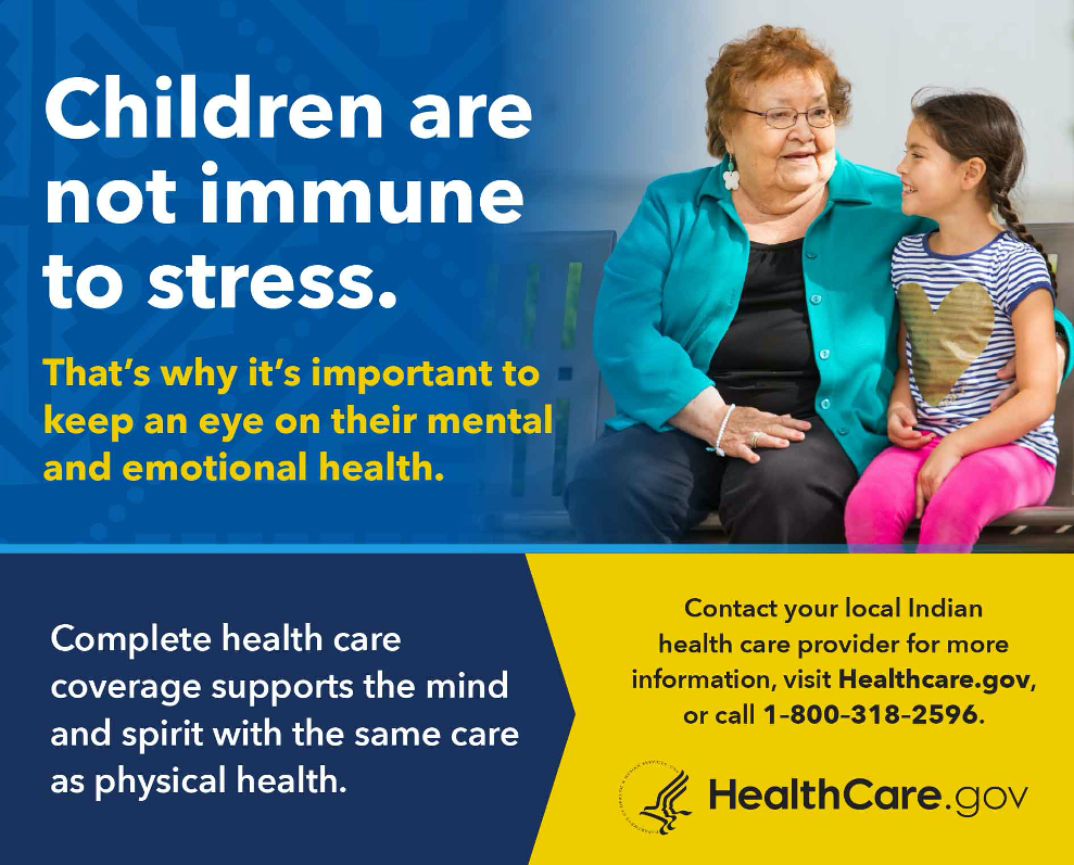 Children are not immune to stress. That's why it's important to keep an eye on their mental and emotional health. Contact your local Indian health care provider, visit healthcare.gov or call 1-800-318-2596. A message from the Centers for Medicare and Medicaid Services.