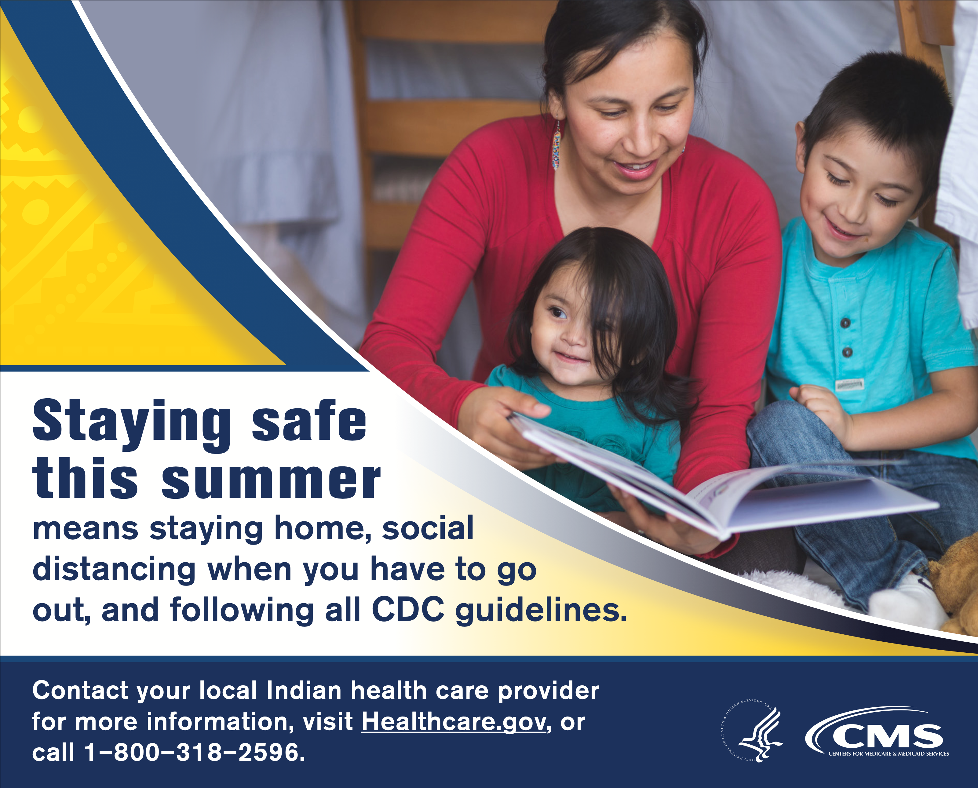 Staying safe this summer means staying home, social distancing when you have to go out, and following all CDC guidelines. Contact your local Indian health care provider, visit healthcare.gov or call 1-800-318-2596. A message from the Centers for Medicare and Medicaid Services.