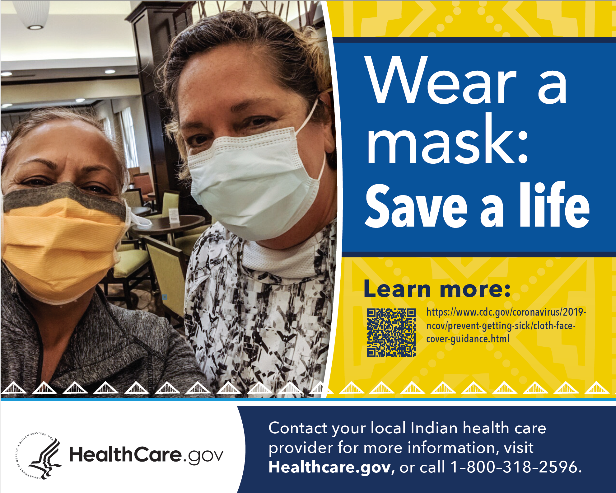 Wear a mask: save a life. Contact your local Indian health care provider for more information, visit Healthcare.gov, or call 1–800–318–2596. A message from the Centers for Medicare and Medicaid Services.
