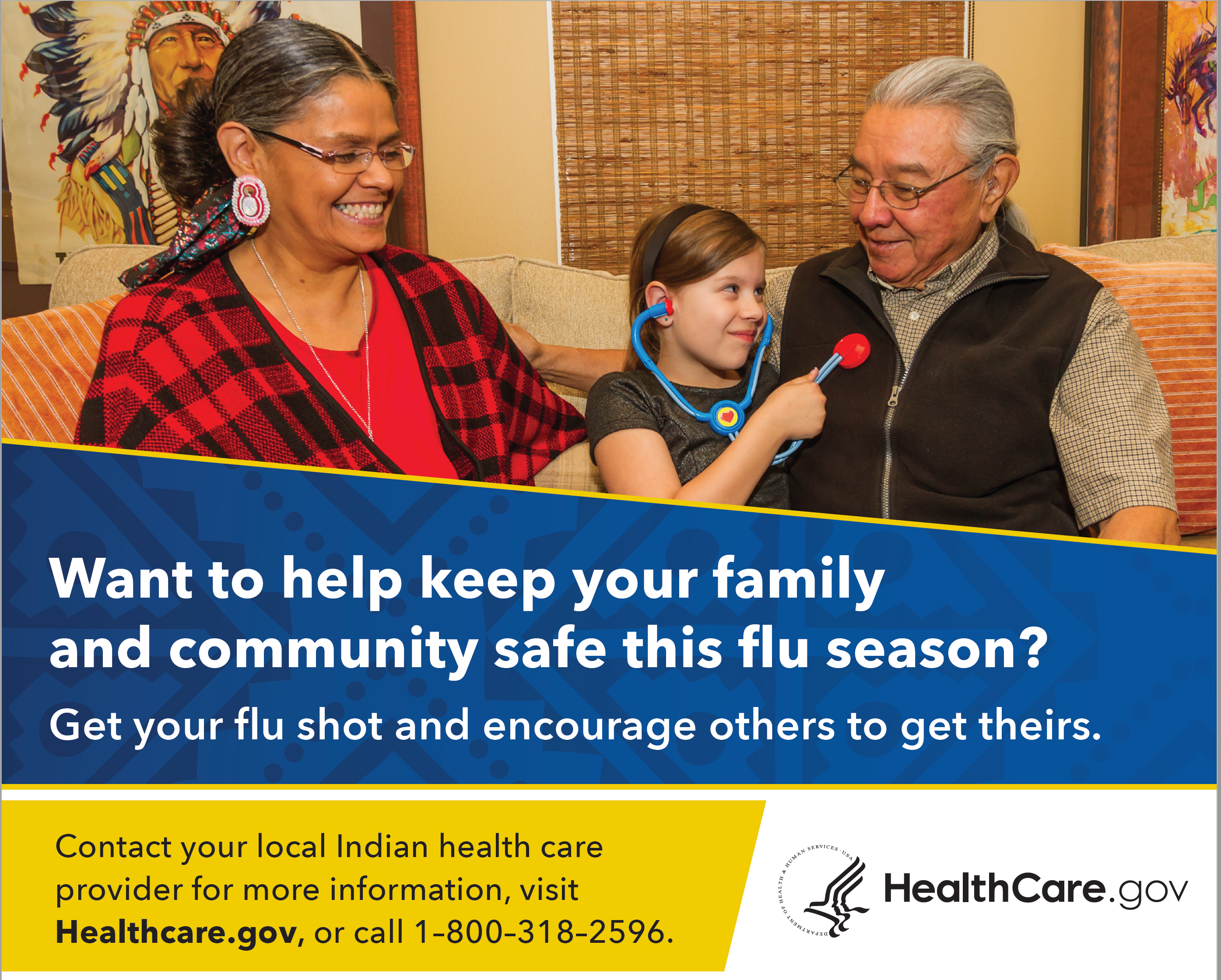 Want to help keep your family and community safe this flu season? Get your flu shot and encourage others to get theirs. Contact your local Indian health care provider for more information, visit Healthcare.gov, or call 1–800–318–2596.