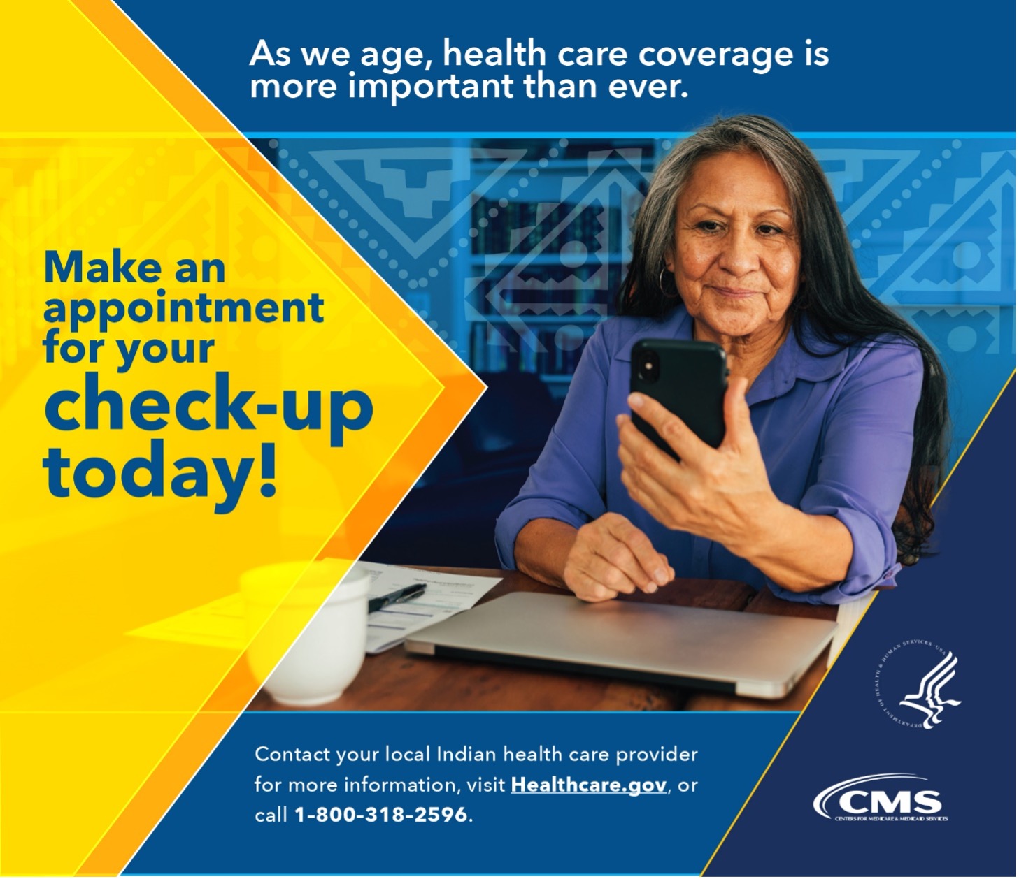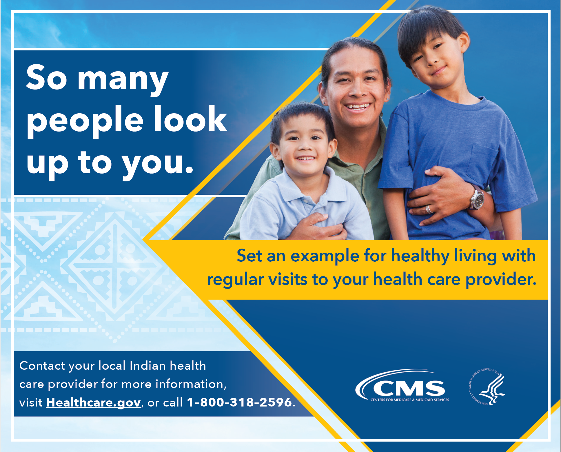 Many people look up to you. Set an example with regular visits to your health care provider. Contact your local Indian health care provider for more information, visit Healthcare.gov, or call 1–800–318–2596. A message from the Centers for Medicare and Medicaid Services.