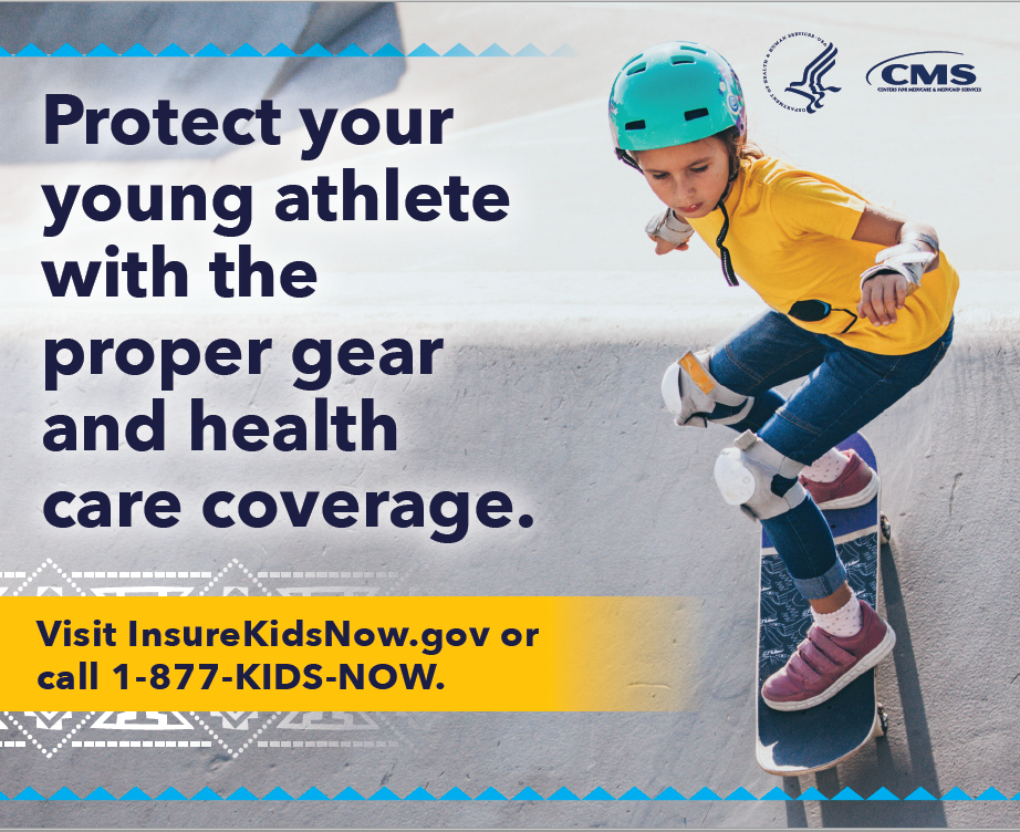Protect your young athlete with the proper gear and health care coverage. Visit InsureKidsNow.gov or call 1-877-KIDS-NOW. A message from the Centers for Medicare and Medicaid Services.