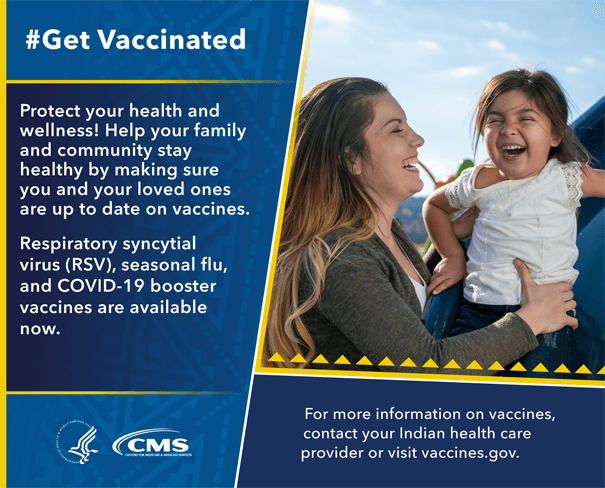 Are your vaccines up to date? Immunizations give kids and adults their best shot at health. They are covered as free preventive care under insurance. Learn more at Medicaid.gov, Medicare.gov, or talk to your Indian health provider.