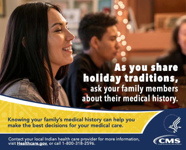 Knowing your family medical history can shape decisions you make about your health. When catching up with family around the holidays, make sure to ask about their health. Contact your local Indian health care provider for more information, visit Healthcare.gov, or call 1–800–318–2596. A message from the Centers for Medicare and Medicaid Services.