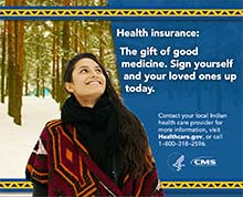 Health insurance: The gift of good medicine. Sign you and your loved ones up today. Contact your local Indian health care provider for more information, visit Healthcare.gov, or call 1–800–318–2596. A message from the Centers for Medicare and Medicaid Services.